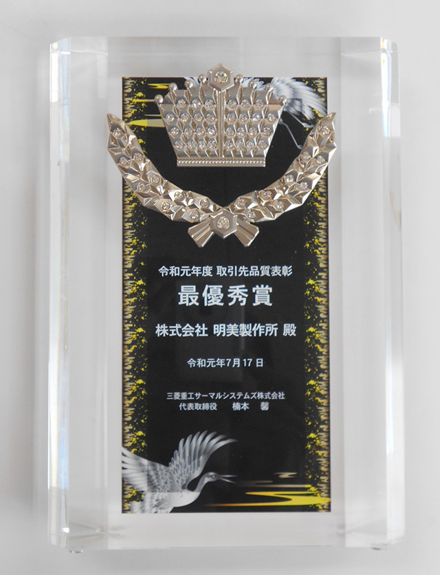 明美製作所は品質マネジメントシステムに関する、国際規格ISO9001の登録認証工場です。